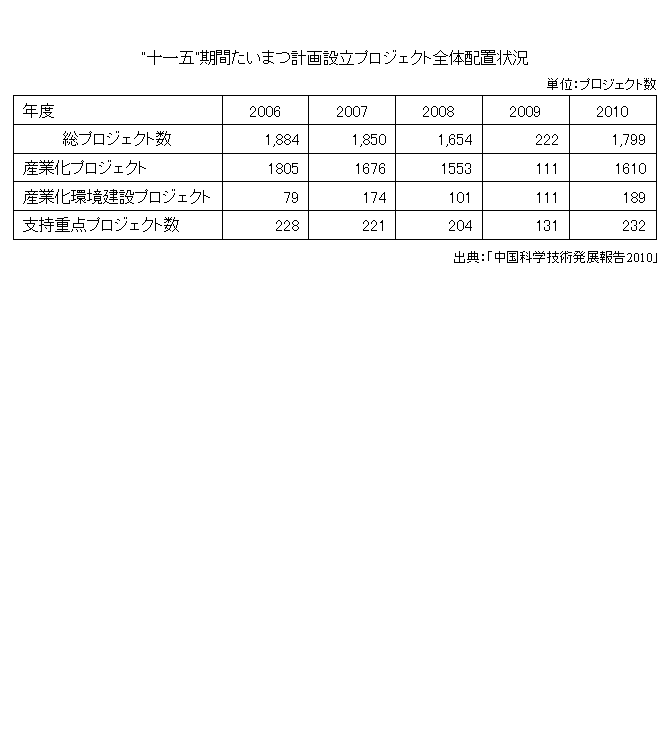 第11次5か年計画期間におけるたいまつ計画により運営されたプロジェクト数は、2010年には約1,800本となっている。