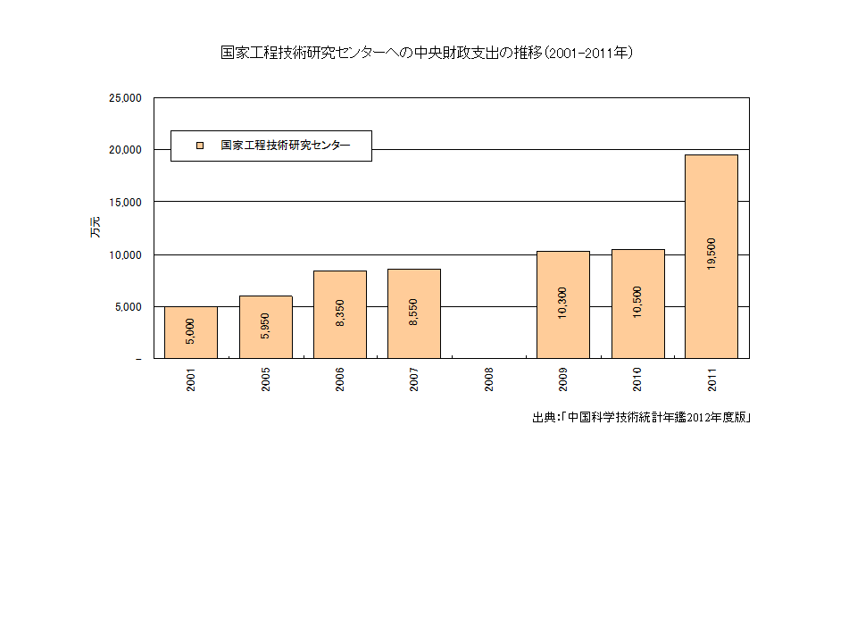 国家工程技術研究センターへの中央財政支出の推移(2001-2011年)