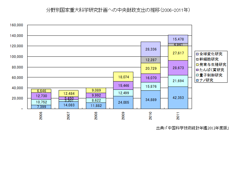 分野別国家重大科学研究計画への中央財政支出の推移(2006-2011年)