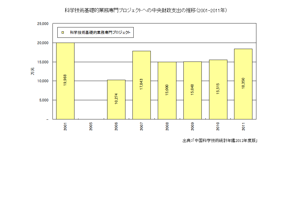 2011年の科学技術基礎的業務専門プロジェクトへの中央財政支出は18,350万元となっている。