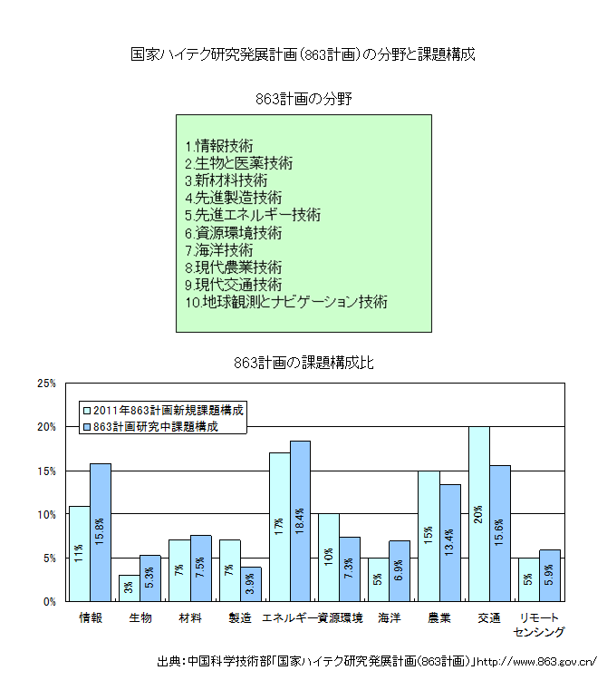 国家ハイテク研究発展計画(863計画)では、10のハイテク分野が指定されている。