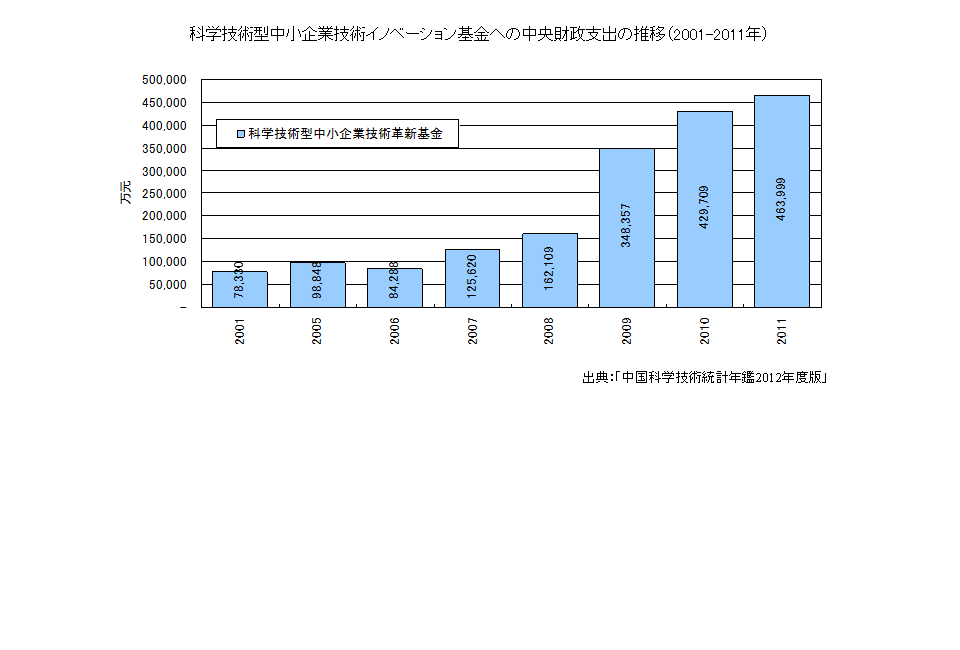 2011年の科学技術型中小企業技術イノベーション基金への中央財政支出は463,999万元である。