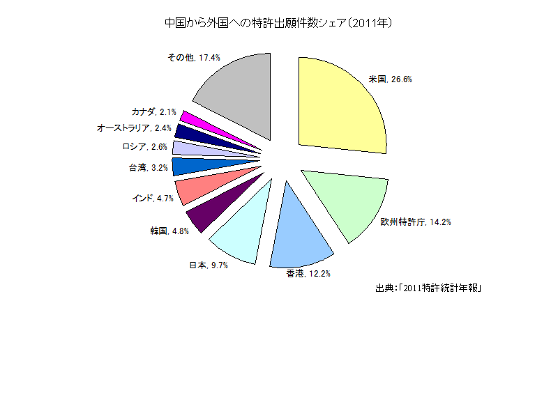中国から外国への特許出願件数シェア(2011年)